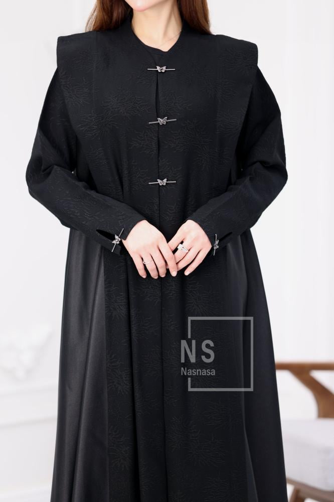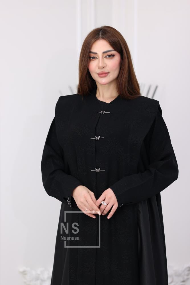 تُعد عباية فكرو مشجر مع لمعة وأزرار معدنية قطعة تنساب بترفٍ ناعم، تجمع بين نقشة الفكرو البارزة ولمعة الخامة الفاخرة، لتمنحك حضورًا واثقًا وأناقة تُلاحظ من أول خطوة. تصميم متقن يُحاكي الذوق الراقي، حيث تلتقي الفخامة الهادئة مع التفاصيل المعدنية الأنيقة، لتصبح عباية فكرو مشجر خيارًا مثاليًا لإطلالاتك المميزة من متجر nasnasa.