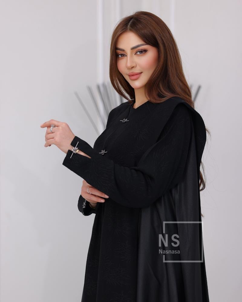 عباية فكرو مشجر بتصميم فاخر يجمع بين النقشة البارزة واللمعة الراقية، تمنحك حضورًا قويًا وأناقة متكاملة، وتُبرز جمال القصّة واتساعها الملكي بأسلوب متوازن بين الفخامة والبساطة، كما اعتدتِ من nasnasa.
